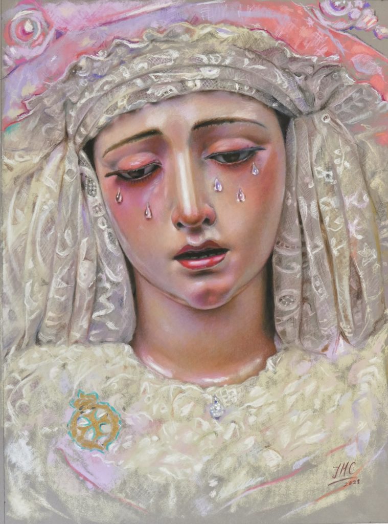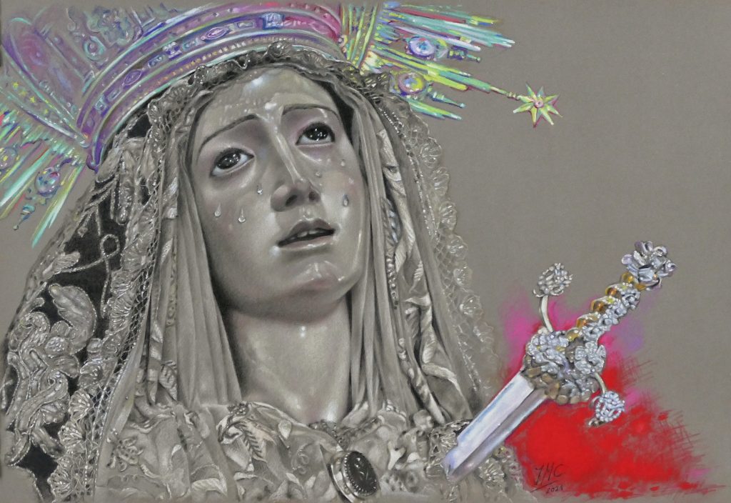Una Espada te atravesará el alma abril 27, 2021 / josecabrera Pintura a pastel y grafito sobre panel de Maria Stma del Mayor Dolor (Jerez) Colección particular.