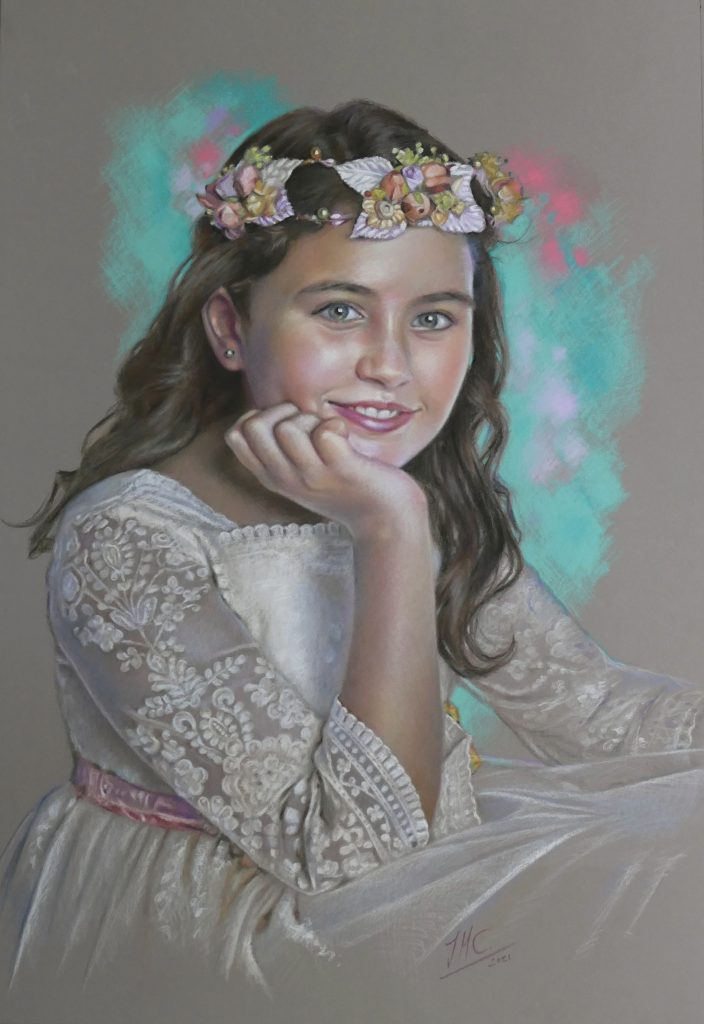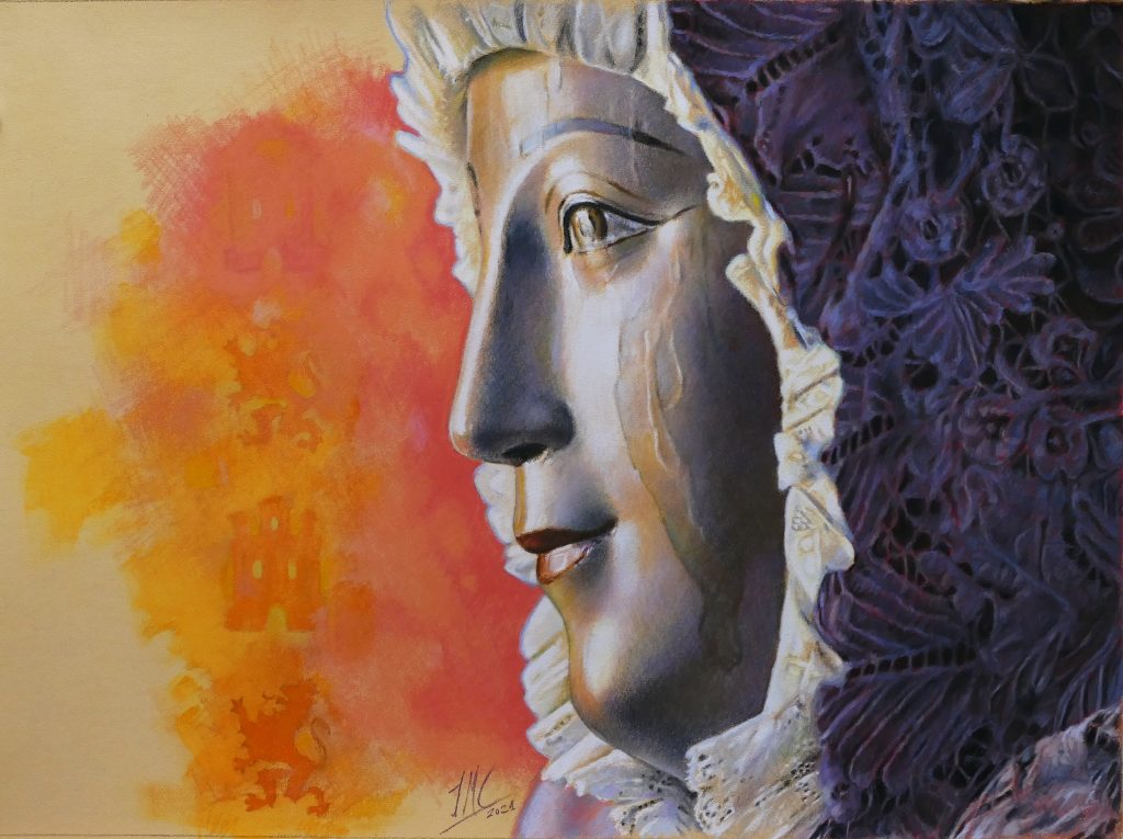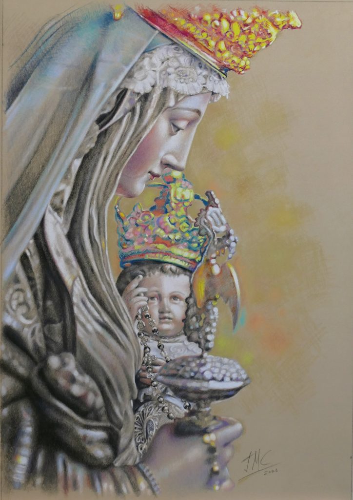 pintura basada en la virgen del Amparo de Sevilla. Pastel sobre papel de celulosa 35×50cm.