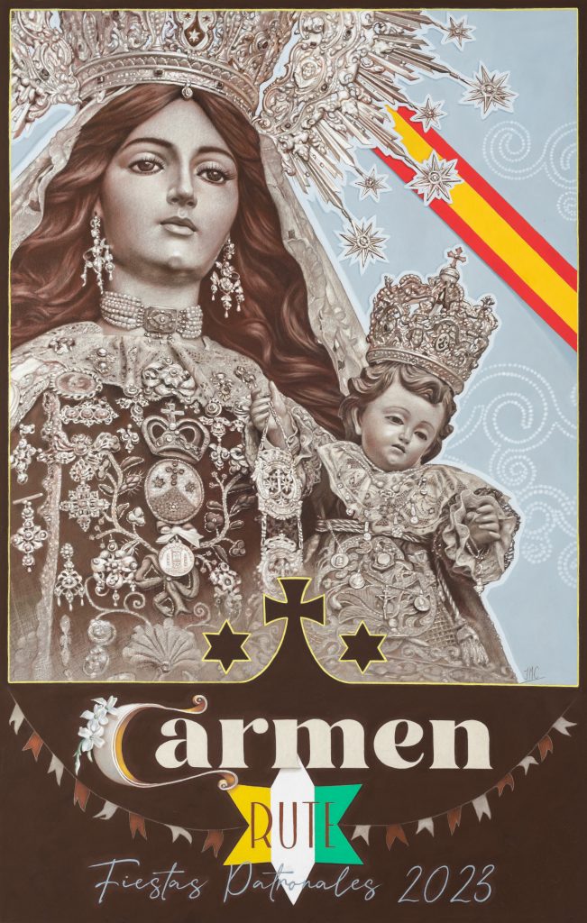 Cartel anunciador de las fiestas patronales en honor a la Stma Virgen del Carmen de Rute Coronada 2023.