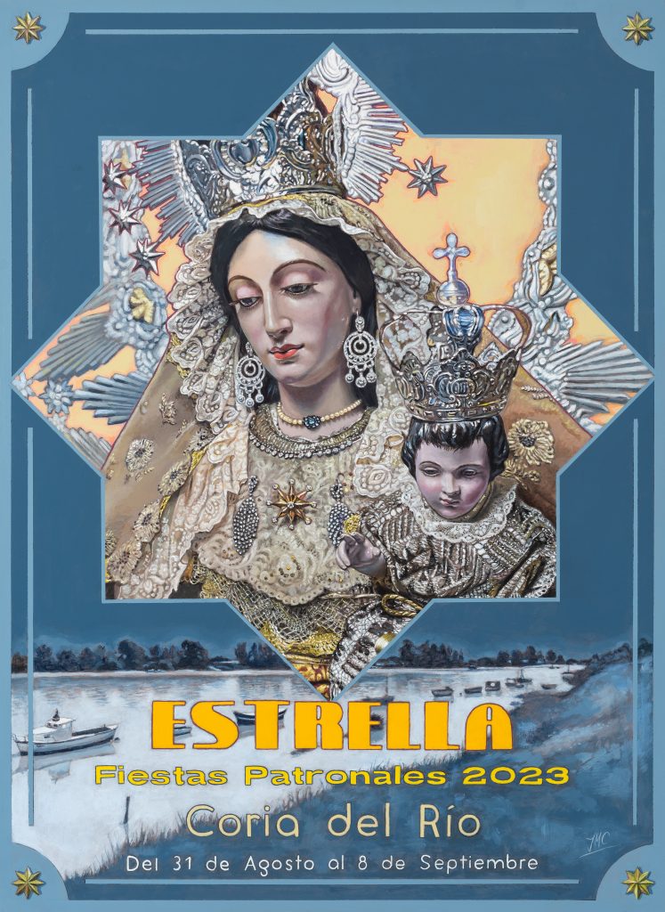Cartel anunciador de las fiestas patronales en honor a Ntra Sra de la Estrella de Coria del Rio 2023.