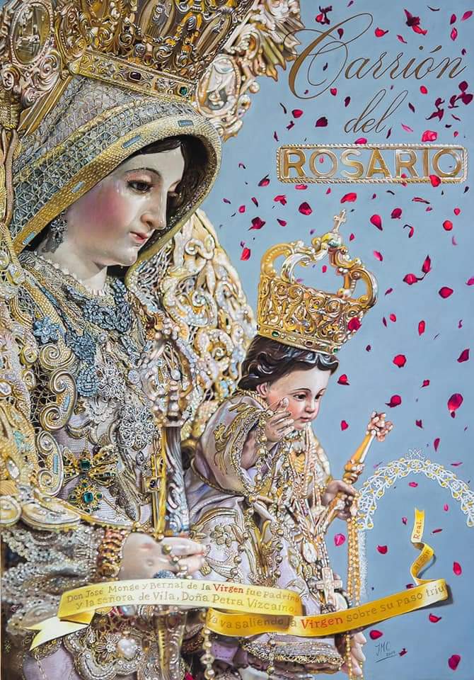 Rosario de Carrion abril 21, 2021 / josecabrera Cartel anunciador de las fiestas en honor a Ntra Sra del Rosario Coronada (Carrión de los céspedes) 2019. Pastel sobre tablilla.